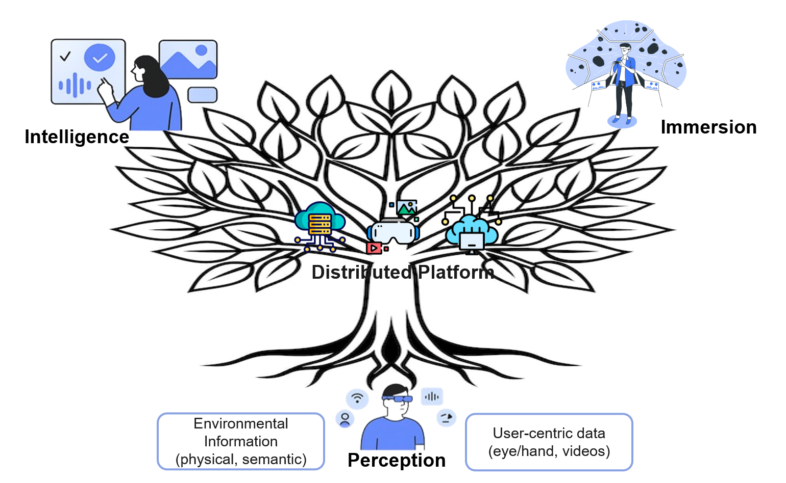 My research interests lie in intersection of extended reality(XR) and human-centered intelligence with a particular focus on leveraging efficient, data-driven techniques to enhance multimodal experiences on portable XR devices. I aim to employ AI-driven approaches to perceive and interpret user-centric data (e.g., eye tracking, hand gestures, physiological signals) and environmental information (e.g., physical properties, semantics) to: